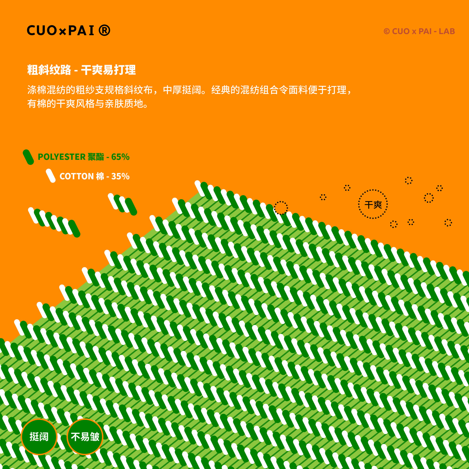 面料:65% 聚酯纤维 35% 棉